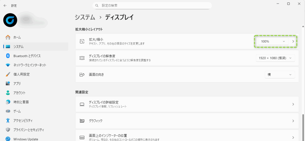 現在、GibbsCAM 2025 において、Windows のディスプレイ拡大縮小率(スケーリング)を 100%以外 に設定して使用すると、画面表示が崩れる現象が確認されています。