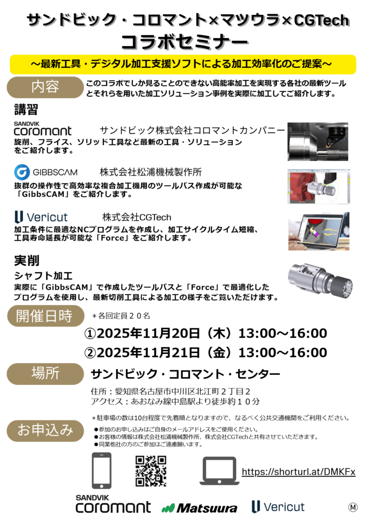 このたび、「サンドビック・コロマント × マツウラ × CGTech コラボセミナー」 を開催する運びとなりました。