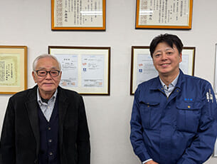 今回のユーザーを訪ねては、山形自動車道山形北インターチェンジから車で約5分の距離にある株式会社丸範です。取材には、創業者で取締役会長を務める伊藤隆様と代表取締役社長を務める伊藤洋輔様に対応頂きました。